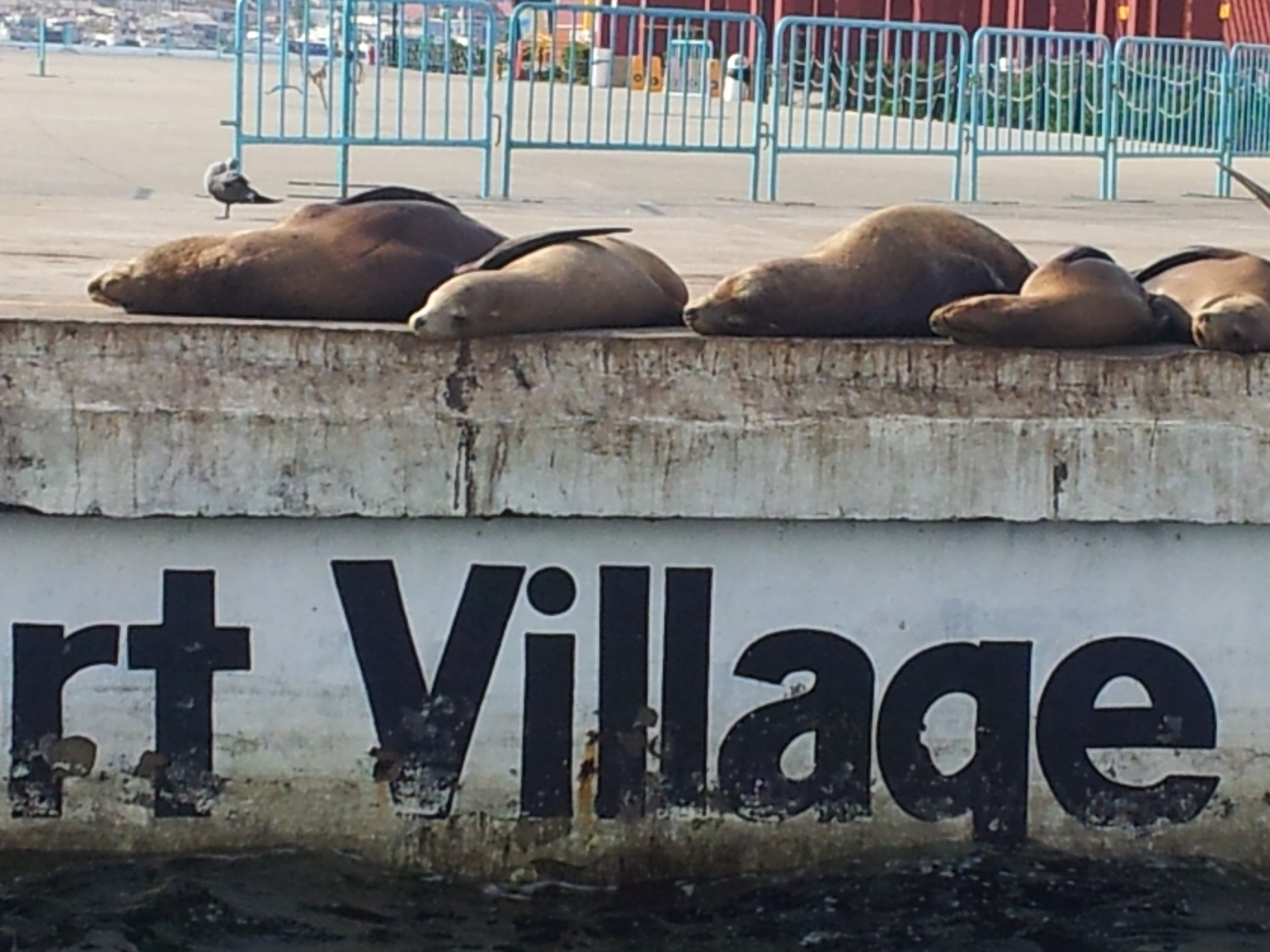 Nos montamos en un barco a cinco dólares el paseo. Nos sentimos felices cuando el viento nos da en la cara y el barco salta en medio de las olas. Los leones marinos nos miran, sin vernos, mientras se desperezan sobre las rocas y juegan entre ellos, gruñendo al aire. Cuando nos acercamos otra vez al puerto, oímos los sones de una charanga que nos espera en el paseo. Sólo escuchamos la música, alegre y viva, de verbena de pueblo. Por fin, el barco atraca y la gente se baja; pasamos junto a los músicos, que se esfuerzan por mantenernos, tocan más fuerte, más fuerte, más fuerte… Es entrañable esta charanga. Pero nosotros pasamos de largo, como en Bienvenido Mr. Marshall.