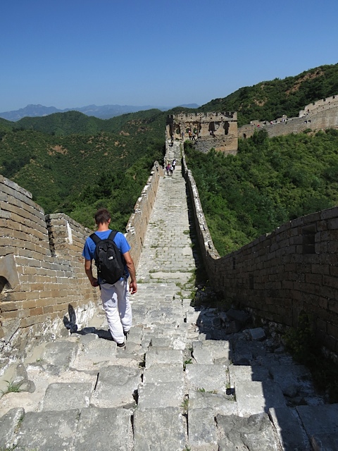 Tenemos tres horas para recorrerla. En principio nuestra idea era caminar desde Jinshanling hasta Simatai, la ruta preferida por los senderistas, pero esa parte de la muralla se encuentra actualmente restaurándose y cerrada al público. Así que subimos hasta la muralla y echamos a andar. Dicen que entre estas piedras perdieron la vida varios millones de chinos -algunas fuentes hablan de diez millones-, y que la llegó a defender un millón de guardias. Es fácil imaginarse el horror, a pesar de las bellas montañas que te rodean, de tantas vidas de usar y tirar. Hasta aquí desplazaron a los obreros y ciudadanos caídos en desgracia, que iban cayendo como moscas por el agotamiento y las duras condiciones de trabajo. Sus cuerpos se enterraban allí mismo, sin más contemplaciones. Por eso dicen que la Gran Muralla es en realidad el mayor cementerio del mundo.