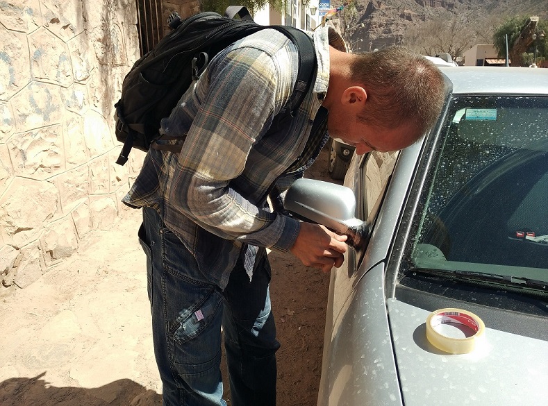 A la vuelta de los valles calchaquíes tuvimos que pasar de nuevo por Salta para dejar el coche. Lo metimos en la cochera de la que lo habíamos sacado, llamamos al encargado de la casa de alquiler y esperamos, pacientes, a que el chico le diera una vuelta y otra, fingiendo que no le impresionaba la capa de barro que lo envolvía. Era como una duna del desierto con ventanas. Nos dieron el peor coche de la flota, pero nosotros nos vengamos y lo pusimos a prueba en las subidas de las quebradas, en las carreteras de ripio, en los riachuelos, en las procesiones del folclore popular, los atascos y las fantasmagóricas ciudades de polvo y sol.